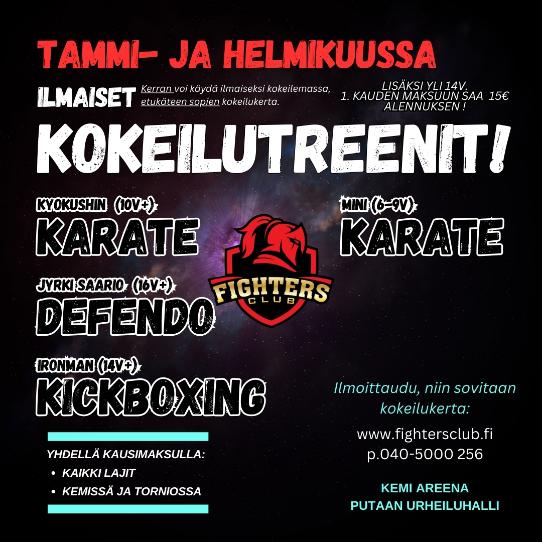 Kaikiin ryhmiin mahtuu vielä (1.2.2026) mukaan ! Myös äsken aloitettuun Minikarateen voi hyvin tulla mukaan ainakin helmikuun ajan.